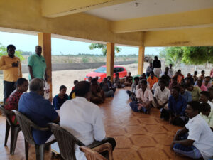 கடலூர் மாவட்டம், சிதம்பரம் சட்டமன்றத் தொகுதிக்குட்பட்ட கிள்ளை பேரூரில் பாகம் எண் – 112, எம்.ஜி.ஆர்.நகர், தளபதி நகர், சிசில் நகர், இருளர் பழங்குடி மக்கள் வசிக்கும் பகுதியில் யாரும் மீன்பிடி தொழிலுக்கு செல்லாமல், பொது இடத்தில் திமுக தலைமை செயற்குழு உறுப்பினர், பேரூர் கழக செயலாளர், பேரூராட்சி